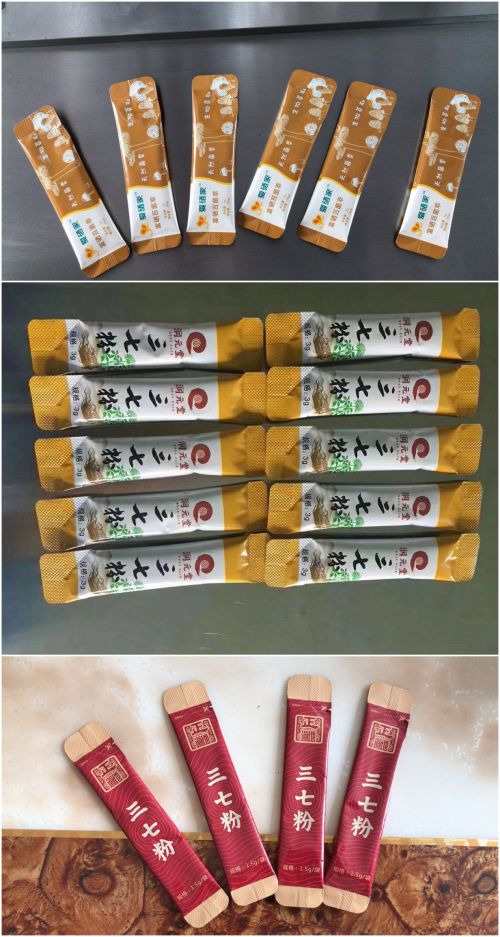 “顆粒背封沖圓角包裝機”包裝出的樣袋展品